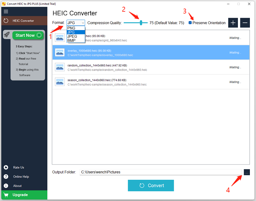 Third, optionally, check/uncheck the option Preserve Orientation. If you want the converted images to be the same orientation as the original HEIC images, please keep this option checked.