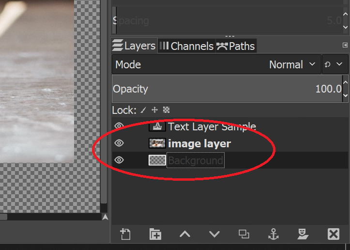 Each time you add a new Layer to your image, the Layers are stacked on top of each other. To bring a Layer to the top or to front of the image, or to send the Layer to the bottom or to the back of the image, you can do so by adjusting the “stack” of Layers. To reposition the Layer, you will need to click on the Layer in order to select it/activate it. A light border will be displayed around the selected Layer.