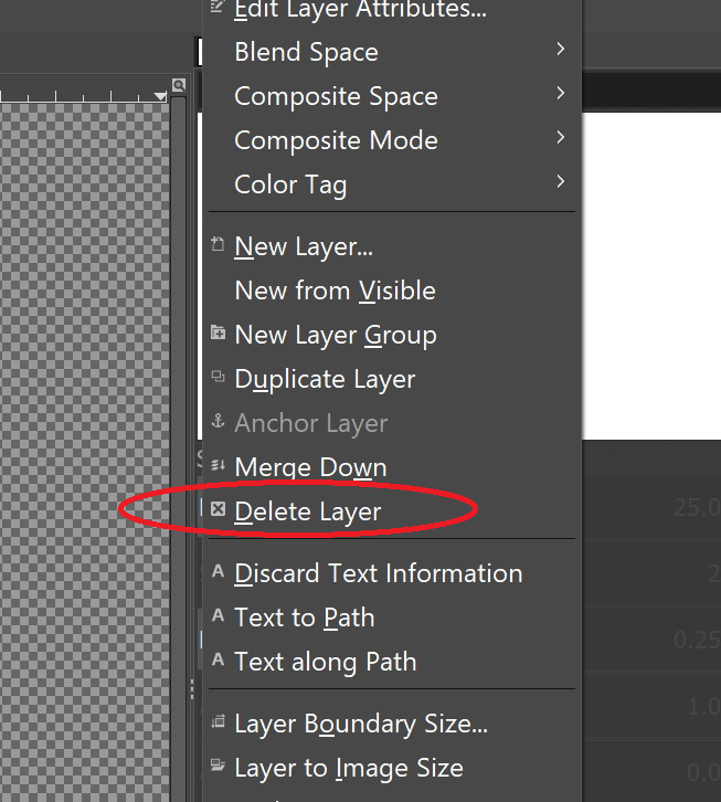 If you would like to remove a Layer from your image, click on the applicable Layer in order to select it/activate it. A light border will be displayed around the selected Layer. Right-click your mouse button on the Layer that you wish to remove and select “Delete Layer” in the menu list.