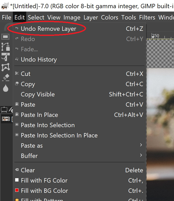 If you deleted the wrong Layer, there is no need to panic. Simply click on “Edit” in the top menu bar and select “Undo Remove Layer”.