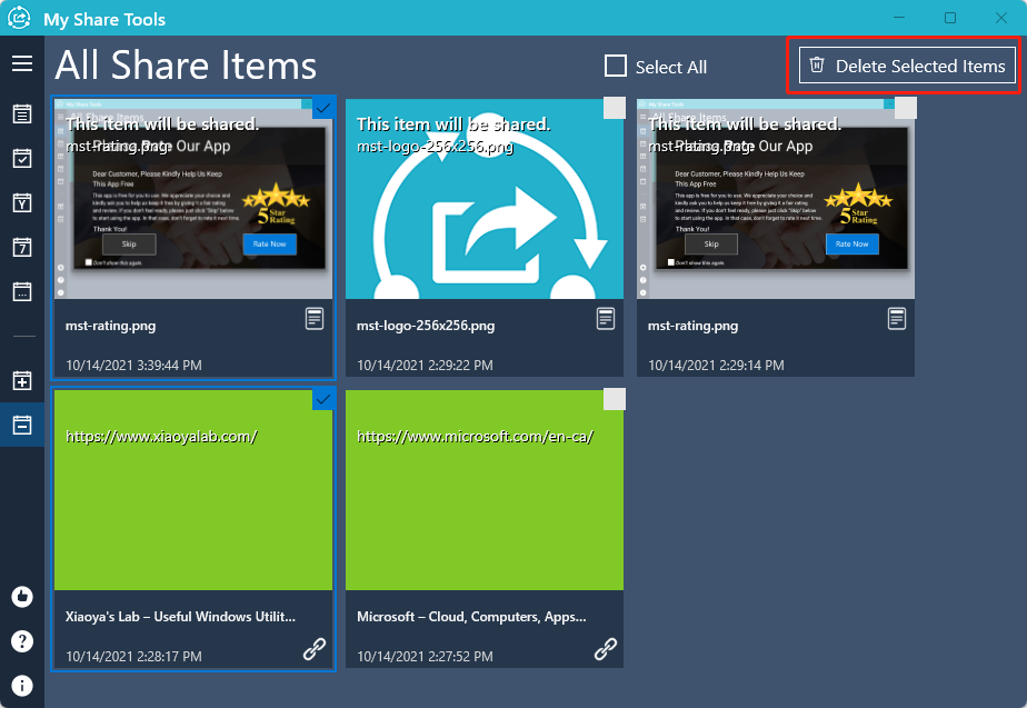 Then, select the items you want to remove, and click the button “Delete Selected Items”.