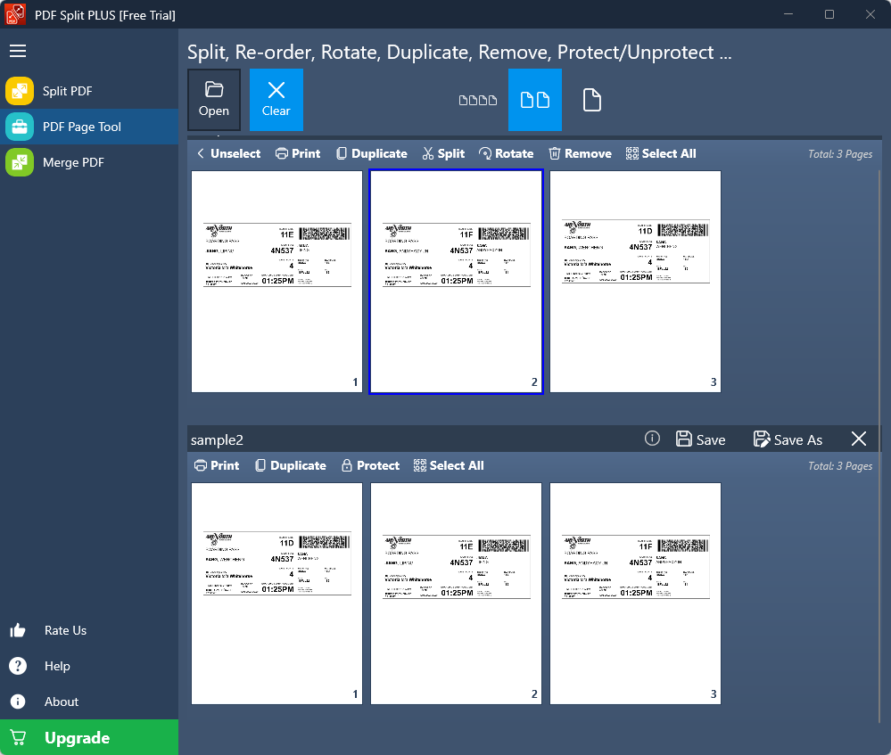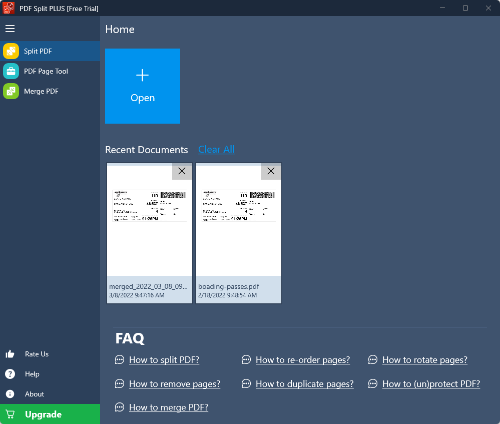 PDF Split PLUS provides you with an easy way to split PDF files. Furthermore, its PDF page tool enables you to precisely rotate, re-order, extract, duplicate, remove any PDF pages in multiple PDF files and protect or unprotect a PDF file with a password. Merge PDF is also a paid feature in this app.