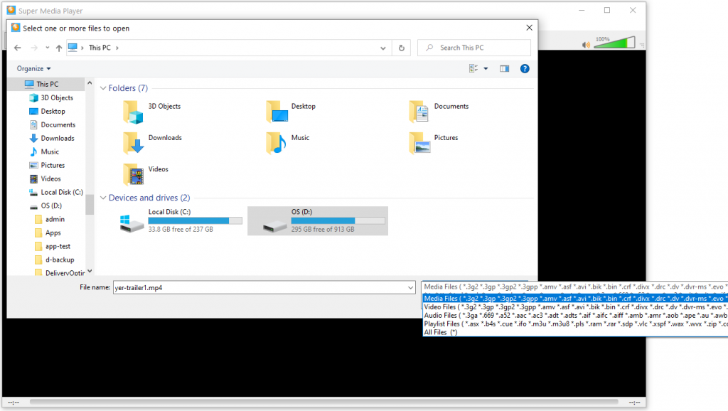 Note: if you are not sure whether your file is supported, just click menu “Media” -> “Open File”, then select “All File” in the drop-down list at the right bottom corner and choose your file to play and give it a try.