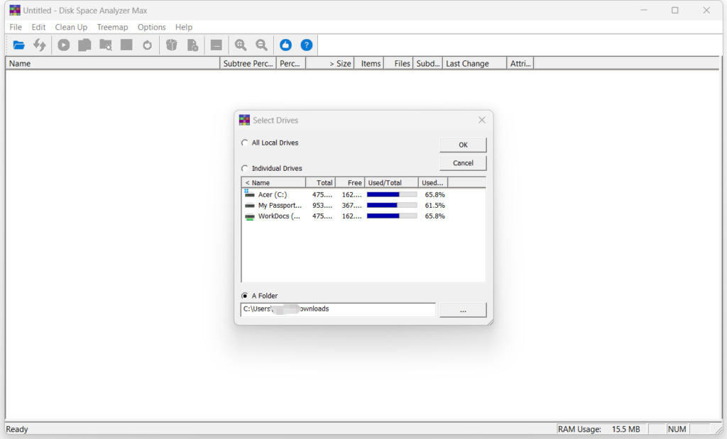 1, Select a disk/folder.