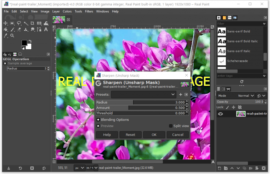 One common reason that we need an image editor is to fix digital camera images that are less than perfect. With Real Paint, you can easily improve colors, adjust sharpness, and do a lot more.